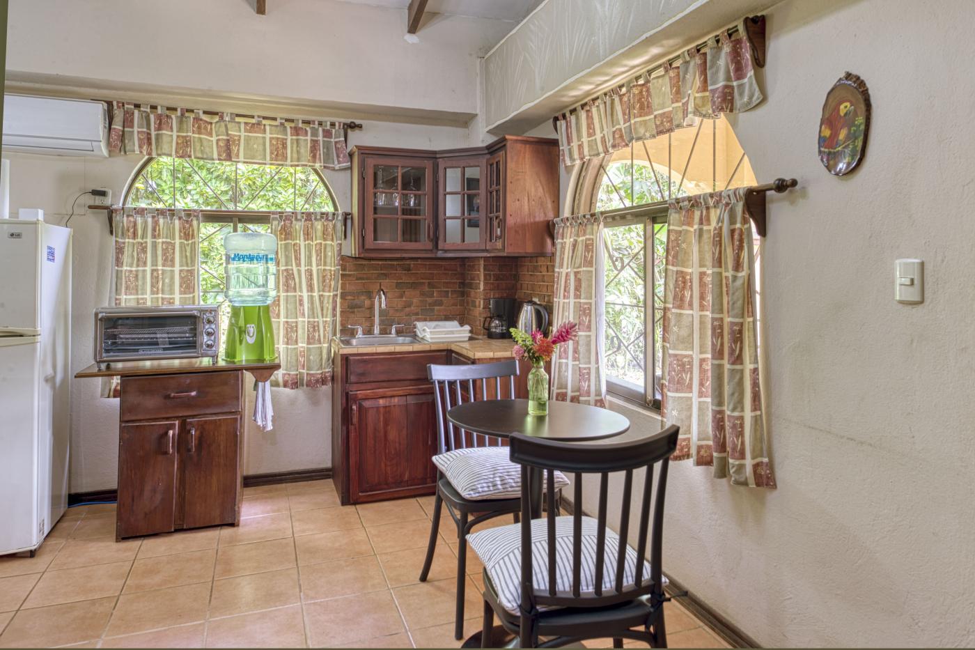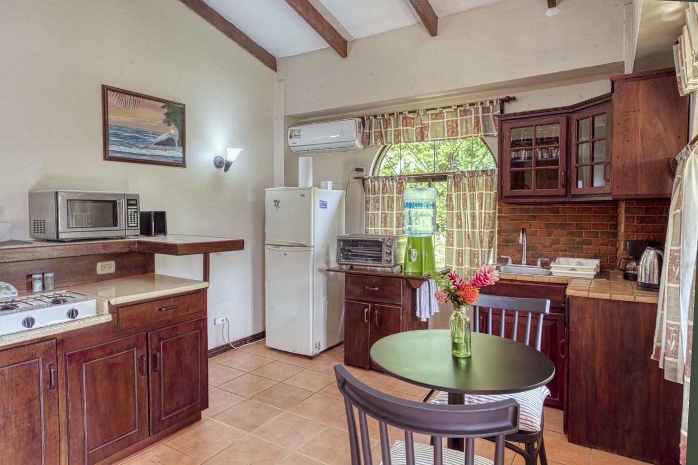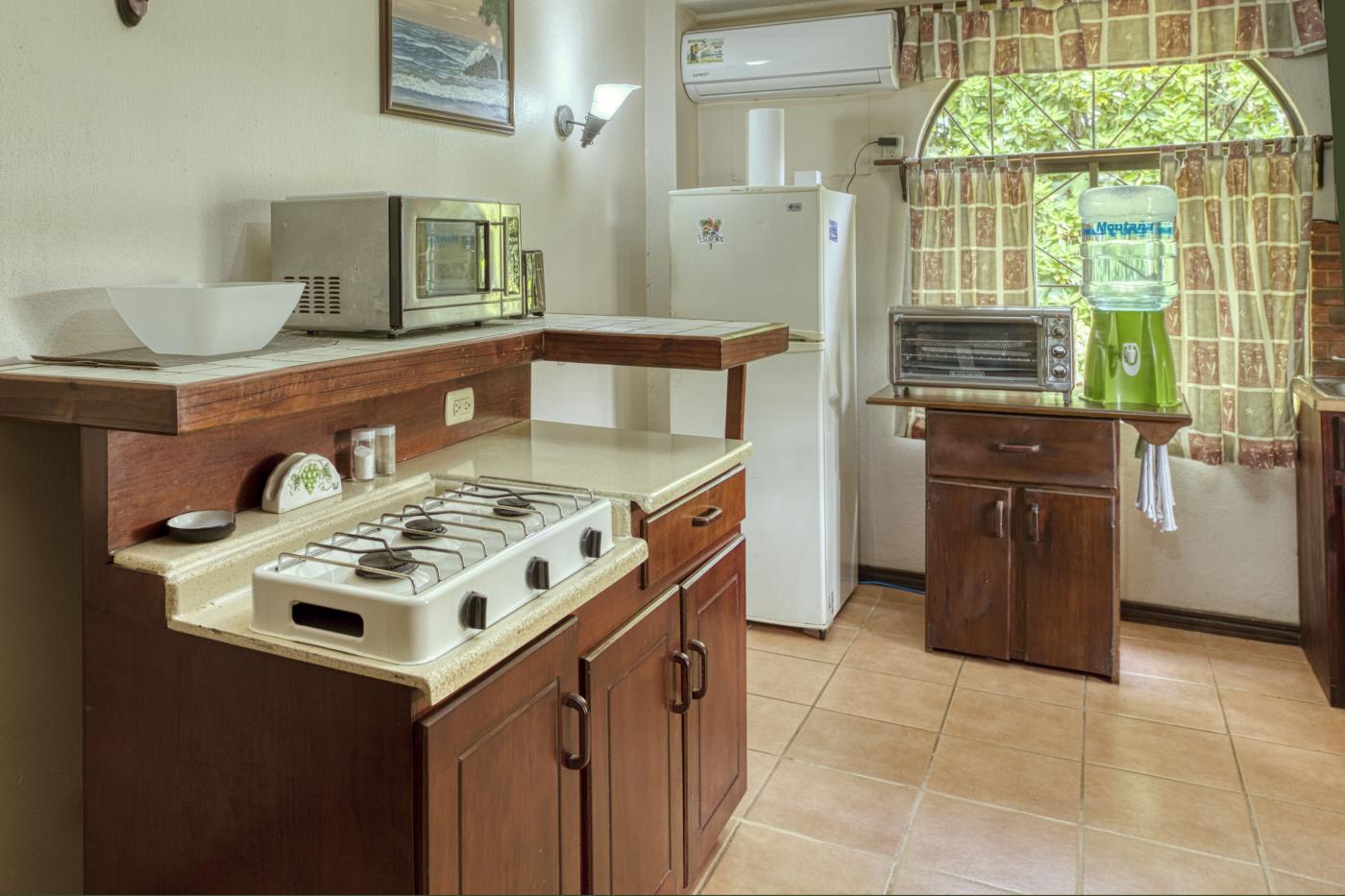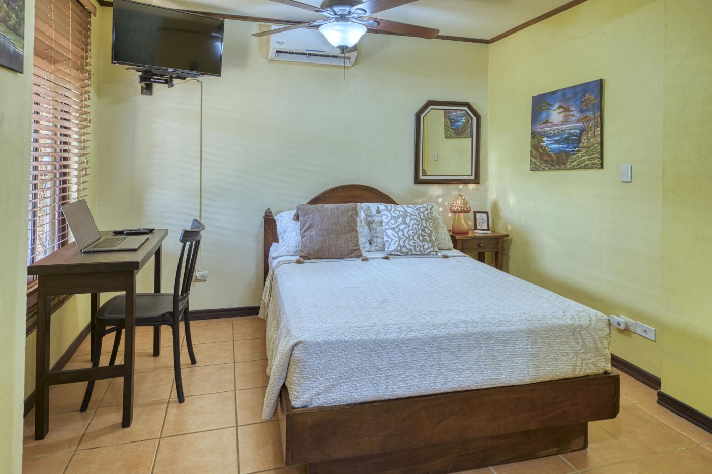 Escape to our cozy apartment located between Jaco and Manuel Antonio, Costa Rica, with a fully equipped kitchenette, A/C, and a comfy double bed.